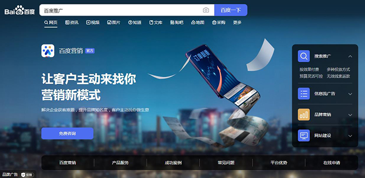 百度推广让企业注册有针对性“产品关键字”(即企业产品或服务的具体名称),使企业产品网页出现在相应搜索结果最靠前的位置,让真正对企业产品感兴趣的潜在客户直接了解产品或服务信息,更容易达成交易!
